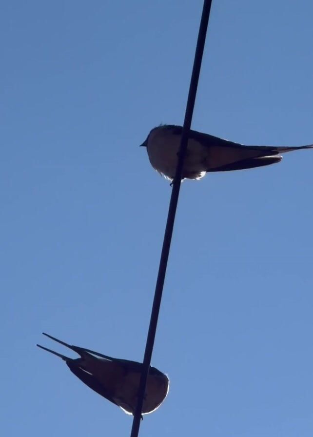 - "Two swallows sit on a black wire against a bright blue sky" by FM-3q1Os1, licensed under CC BY 4.0