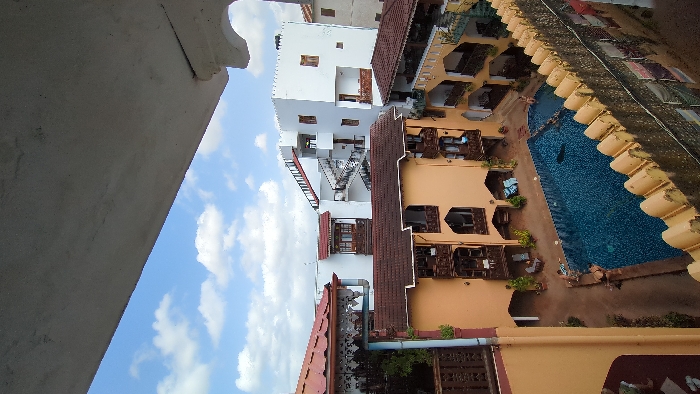 - "The image displays an overhead view of a courtyard complex, likely a hotel, in the city of Zanzibar, Tanzania, observed from a concrete balcony or overhang" by FM-CBnAA3, licensed under CC BY 4.0