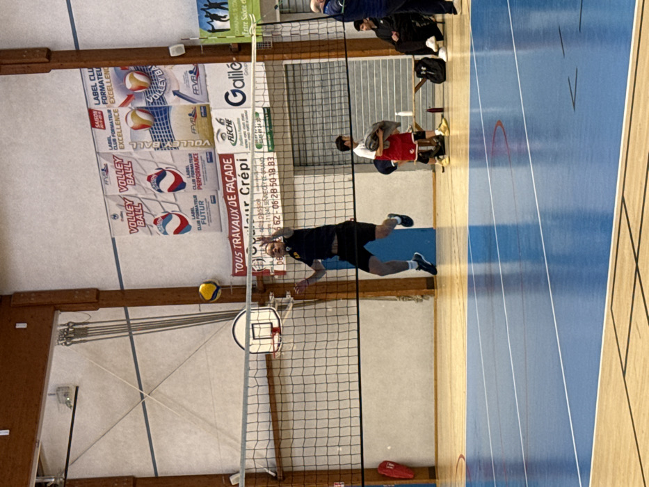 - "This image depicts an active indoor volleyball match in a gymnasium located in Sennecey-le-Grand, France, as indicated by banners displaying the postal code "71240 SENNECEY LE GRAND" by FM-UOLoi1, licensed under CC BY 4.0