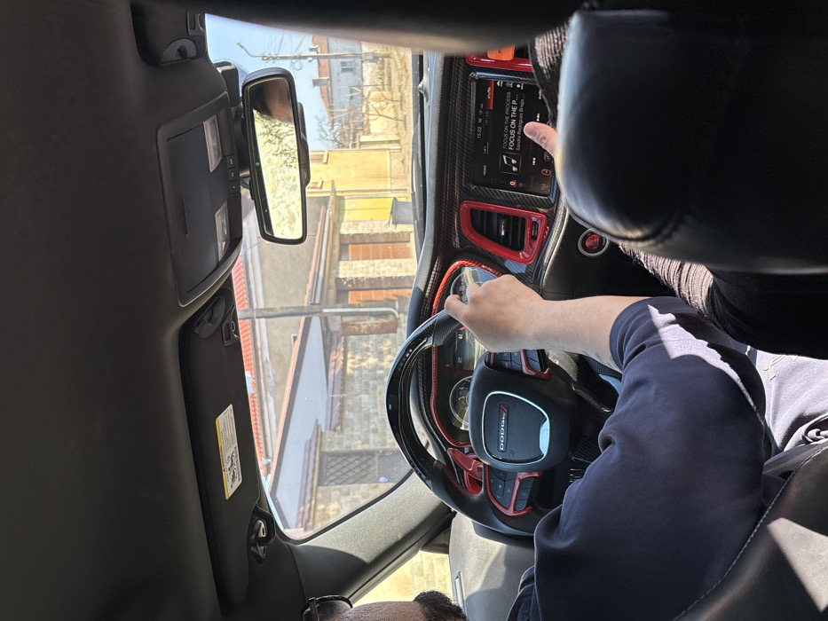 - "The image depicts the interior of a dark-colored Dodge vehicle, viewed from a rear passenger seat, in the city of Rakitnitsa, Bulgaria, during daytime with clear skies" by FM-10ll43, licensed under CC BY 4.0