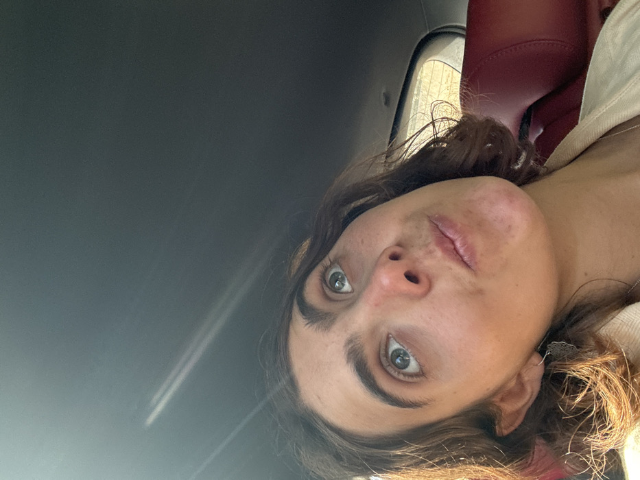 - "A woman with fair skin, brown hair, and green eyes is angled in the frame, presumably within a car" by FM-bmo3E3, licensed under CC BY 4.0