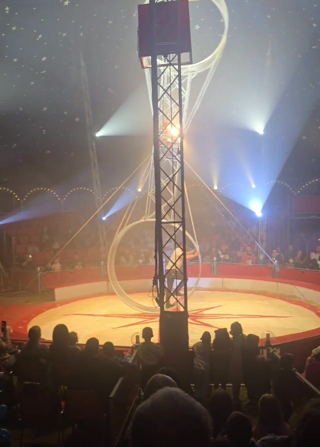 circus act performed inside a large tent