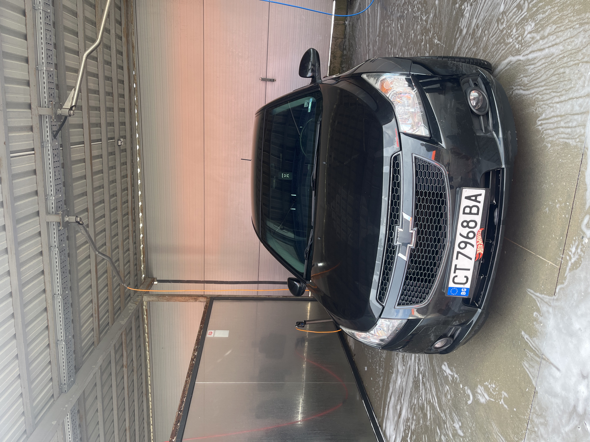 A black Chevrolet Cruze, bearing Bulgarian license plate CT 7968 BA, is centrally positioned within a self-service car wash bay in Stara Zagora, Bulgaria