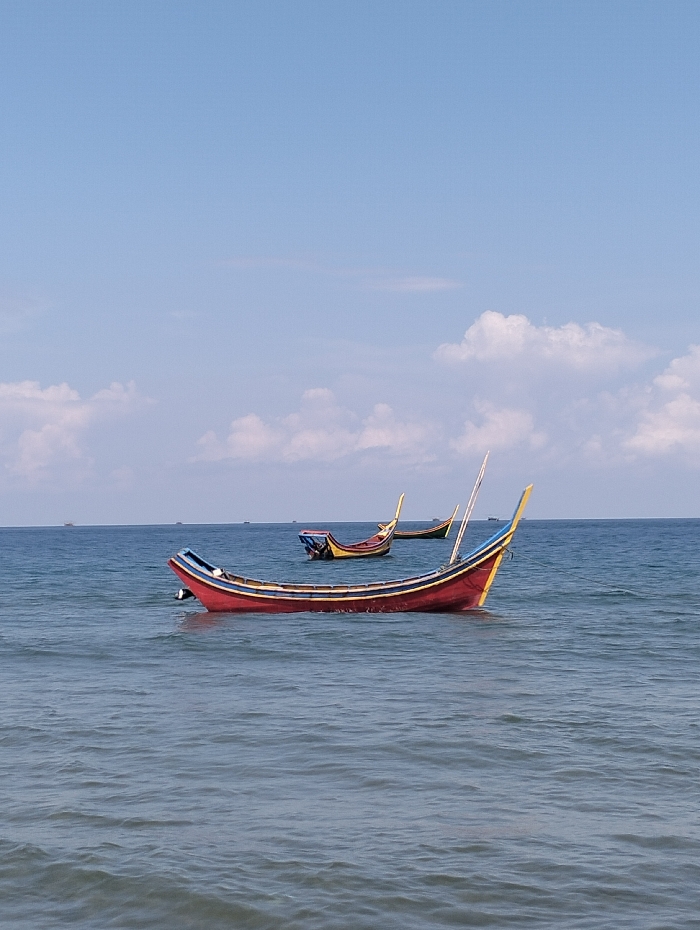 - "Three colorful fishing boats bob on the calm sea under a bright sky with scattered clouds" by FM-sAcf03, licensed under CC BY 4.0