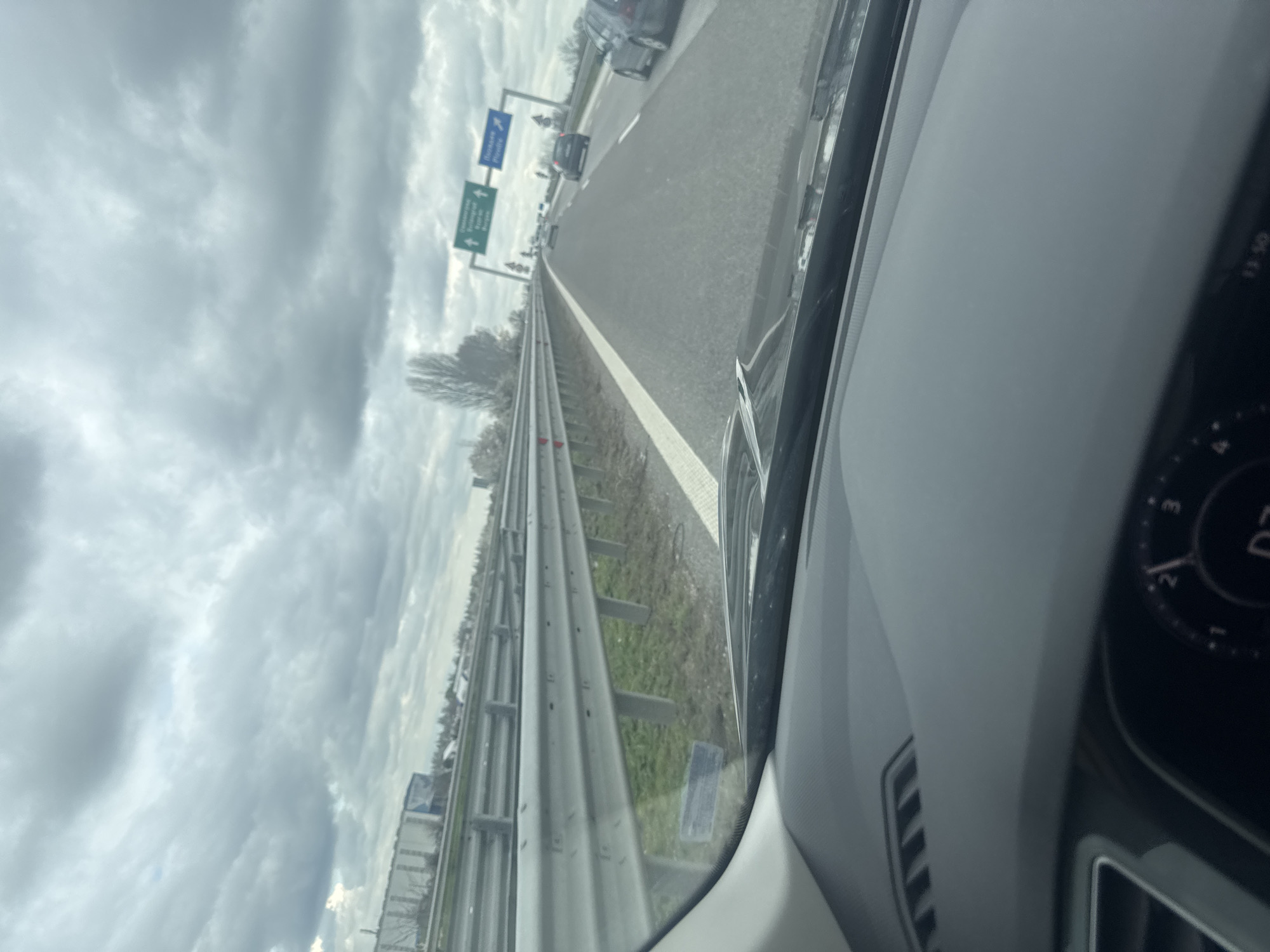 - "An image captured from within a vehicle shows a multi-lane highway under an overcast sky, observed through the windshield over a dark gray dashboard" by FM-d9ObN2, licensed under CC BY 4.0