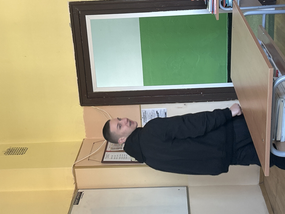 The image depicts an indoor scene, specifically a classroom in Cherven Bryag, Bulgaria