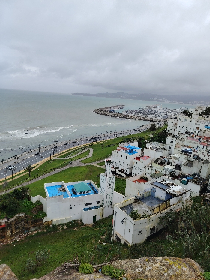 - "An elevated panoramic view overlooks the city of Tangier, Morocco, specifically the Bay of Tangier and its port under an overcast sky" by FM-10g0q2, licensed under CC BY 4.0