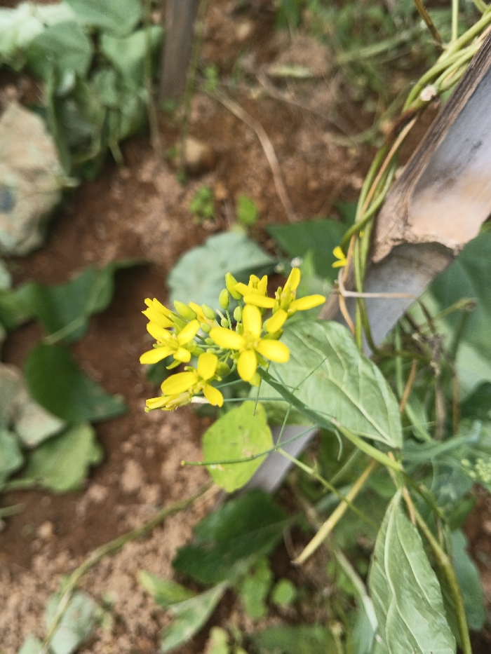 - "The image displays a close-up, outdoor view of a plant featuring multiple bright yellow flowers, each characterized by four petals, clustered in an inflorescence" by FM-dMT6c2, licensed under CC BY 4.0