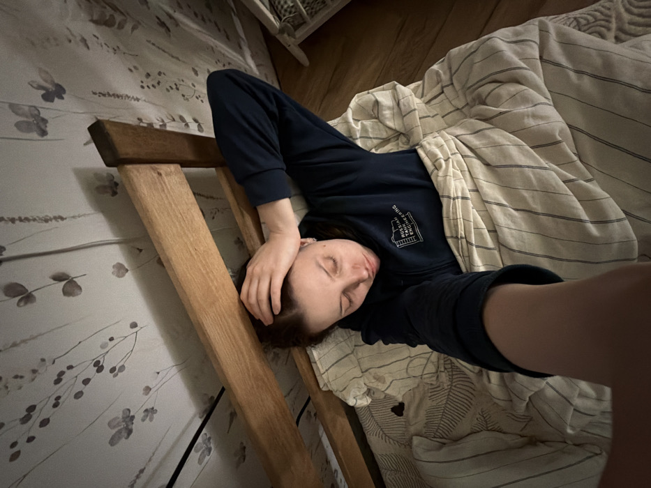 - "A female individual lies in a bed in what appears to be a residential room within the city of Chaikovsky, Russia" by FM-6rQWX2, licensed under CC BY 4.0