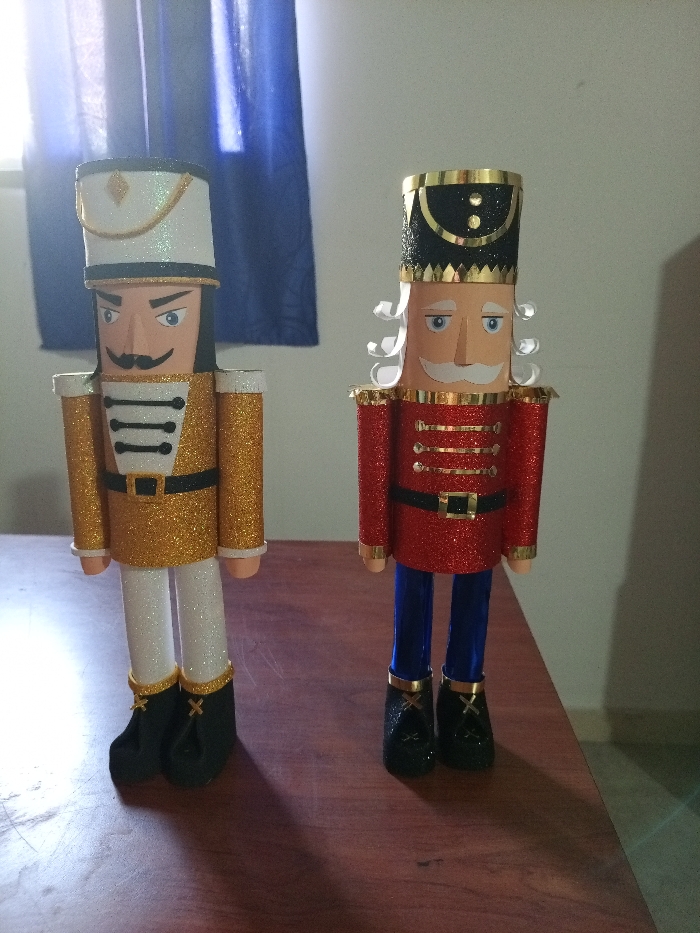 - "The image displays two decorative, glitter-covered soldier figures, resembling Nutcrackers, standing upright on a polished wooden surface" by FM-O0u0j1, licensed under CC BY 4.0