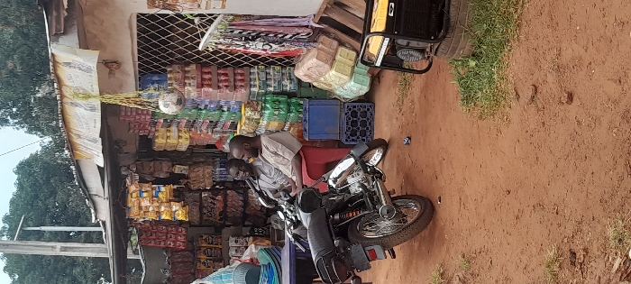 This image depicts a roadside shop in Tuaniako, Nigeria