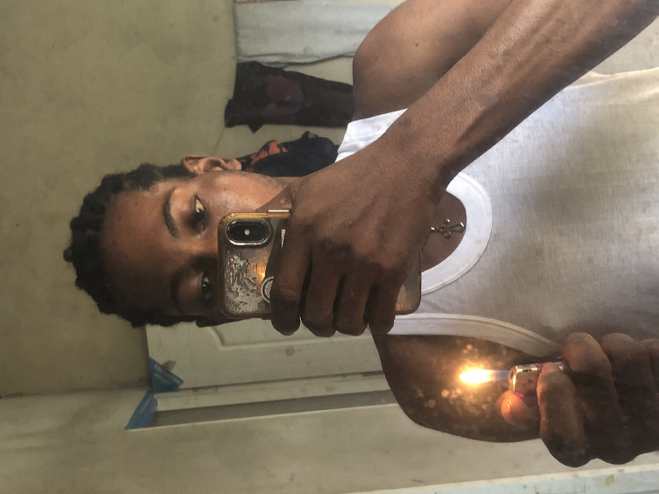 A person is depicted in a mirror selfie, located in Oraukwu, Nigeria