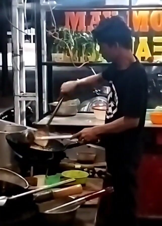 - "A man in a black t-shirt is cooking at an outdoor food stall" by FM-sAcf03, licensed under CC BY 4.0