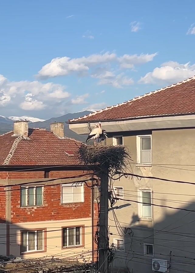 - "Two storks are perched in a large nest atop a utility pole in a residential area on a sunny day" by FM-8osjd2, licensed under CC BY 4.0