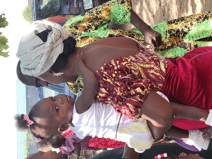 The image captures an outdoor scene in Suleja, Nigeria, under bright daylight with partial overhead foliage providing shade