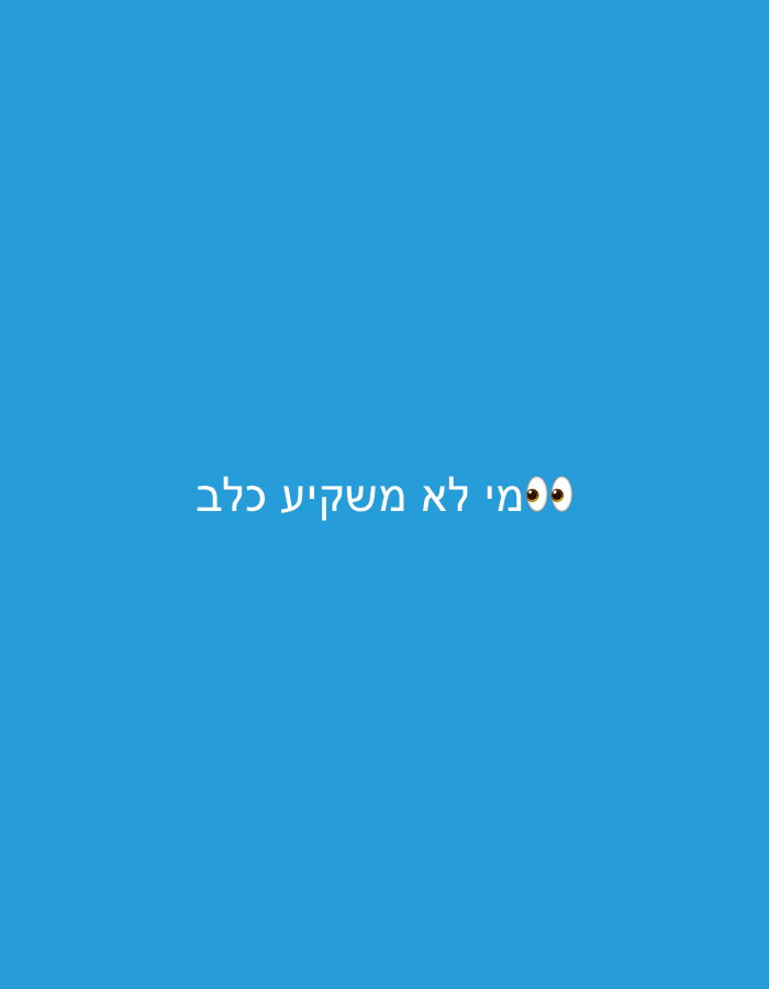 The image displays a digital graphic featuring a solid, uniform medium blue background. A single line of white Hebrew text, integrated with a pictorial emoji, is horizontally centered and positioned slightly above the vertical midpoint of the frame. The text reads "מי 👀 לא משקיע כלב". Specifically, the Hebrew word "מי" (meaning "who") is followed by a pair of cartoonish, wide-open eyes emoji (👀), characterized by brown irises and white sclera. This is succeeded by the Hebrew words "לא" (meaning "not"), "משקיע" (meaning "invests" or "puts in effort"), and "כלב" (meaning "dog"). No people, animate subjects, physical objects beyond the text and emoji, explicit actions, or direct interactions are depicted. The environment is entirely a digital, monochromatic field. The image itself contains no discernible geographic features or landmarks of Hod HaSharon, Israel; this location is provided as contextual information for the image's setting or origin.