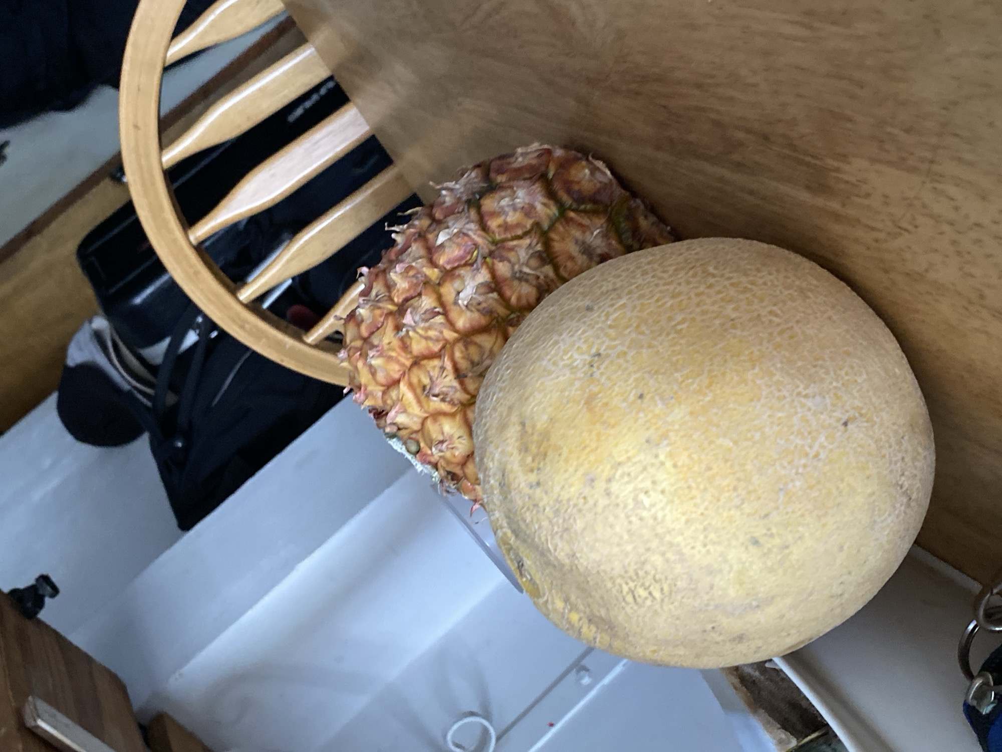 - "A cantaloupe and a pineapple are positioned next to each other" by FM-a3sBJ3, licensed under CC BY 4.0