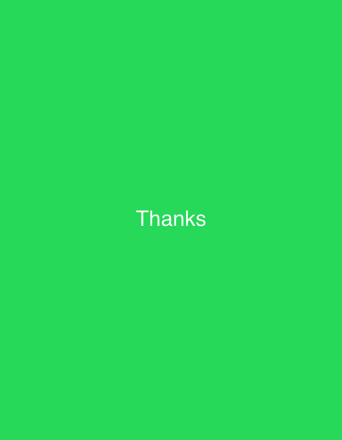 A green background dominates the image. The word "Thanks" is centrally positioned in white text. The font appears simple and sans-serif. The overall impression is a minimalistic design.
