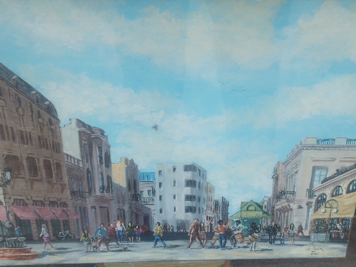 - "This painting depicts a vibrant daytime street scene on Calle Sarandí in Ciudad Vieja, Montevideo, Uruguay" by FM-b3qRJ3, licensed under CC BY 4.0