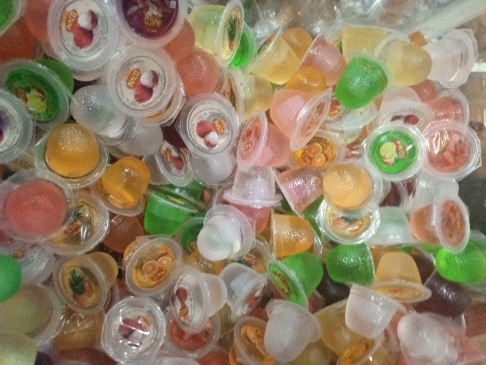 - "The image presents a dense, top-down view of numerous individually packaged fruit jelly cups, likely situated within a retail or storage area in Batheay, Cambodia" by FM-kw8pJ2, licensed under CC BY 4.0
