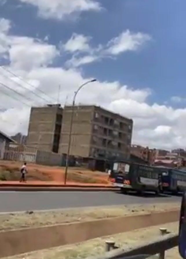 street scene in an urban area, likely in Kenya based on the type of buses visible