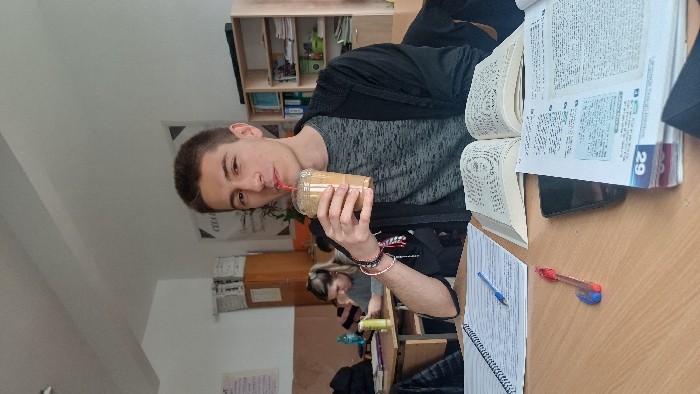 This image depicts an indoor scene within a classroom or study area in Panagyurishte, Bulgaria