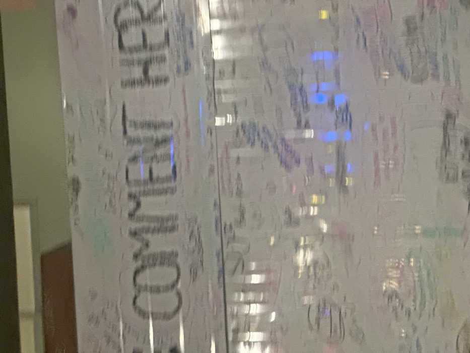 - "The image displays a large, reflective, light-colored surface, likely a whiteboard or glass panel, covered extensively with handwritten text and reflections" by FM-S4vcm1, licensed under CC BY 4.0