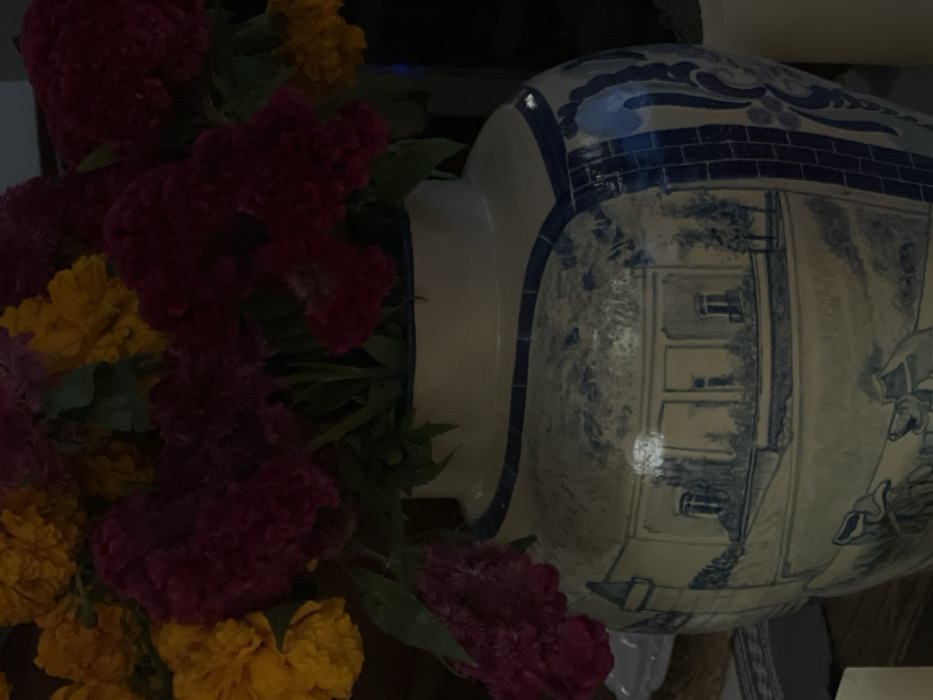 - "This image, captured in Guanajuato City, Mexico, presents a close-up, eye-level view of a decorative ceramic vase holding a dense floral arrangement" by FM-mumWF2, licensed under CC BY 4.0