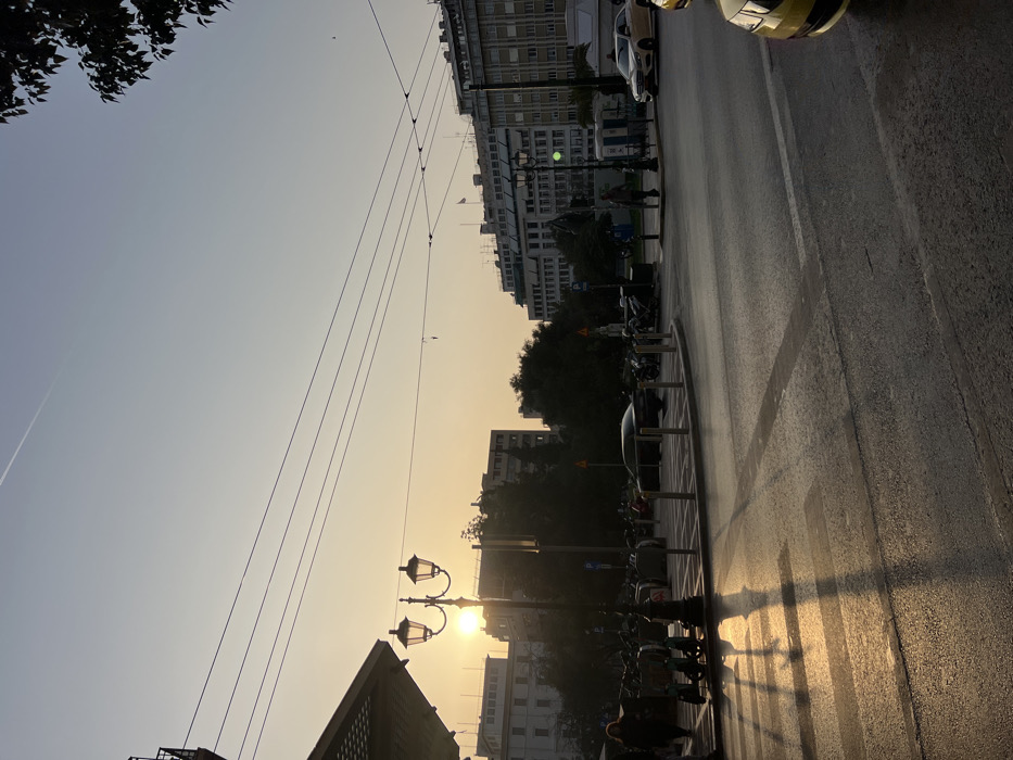 - "An urban street scene in Athens, Greece, likely near Syntagma Square, is depicted during either sunrise or sunset, indicated by the low-angled golden light illuminating the sky and casting long shadows" by FM-nb2S33, licensed under CC BY 4.0