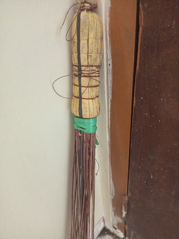 - "A broom leans against a white wall, next to a dark brown wooden door" by FM-LejCA3, licensed under CC BY 4.0