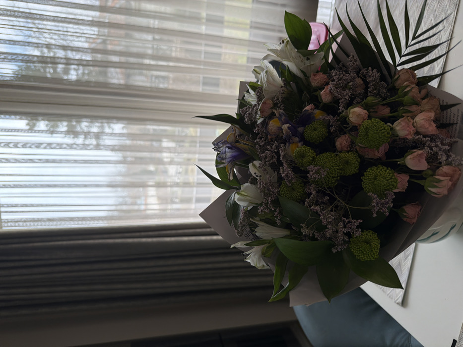 - "The image captures an indoor scene in Lozenets, Bulgaria, centered on a large floral bouquet positioned on a white table in the foreground" by FM-Fh83m2, licensed under CC BY 4.0
