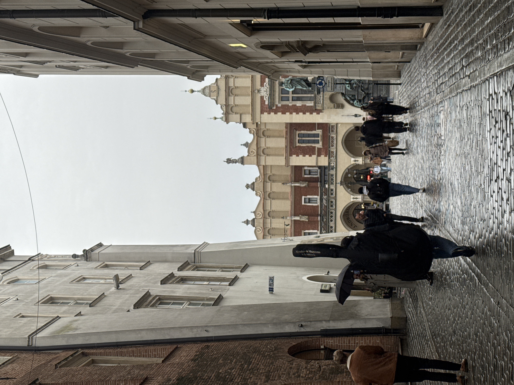 - "A low-angle outdoor shot shows a street in Krakow, Poland, with blurred pedestrians walking on a cobblestone street between tall buildings on either side" by FM-xfE6z2, licensed under CC BY 4.0
