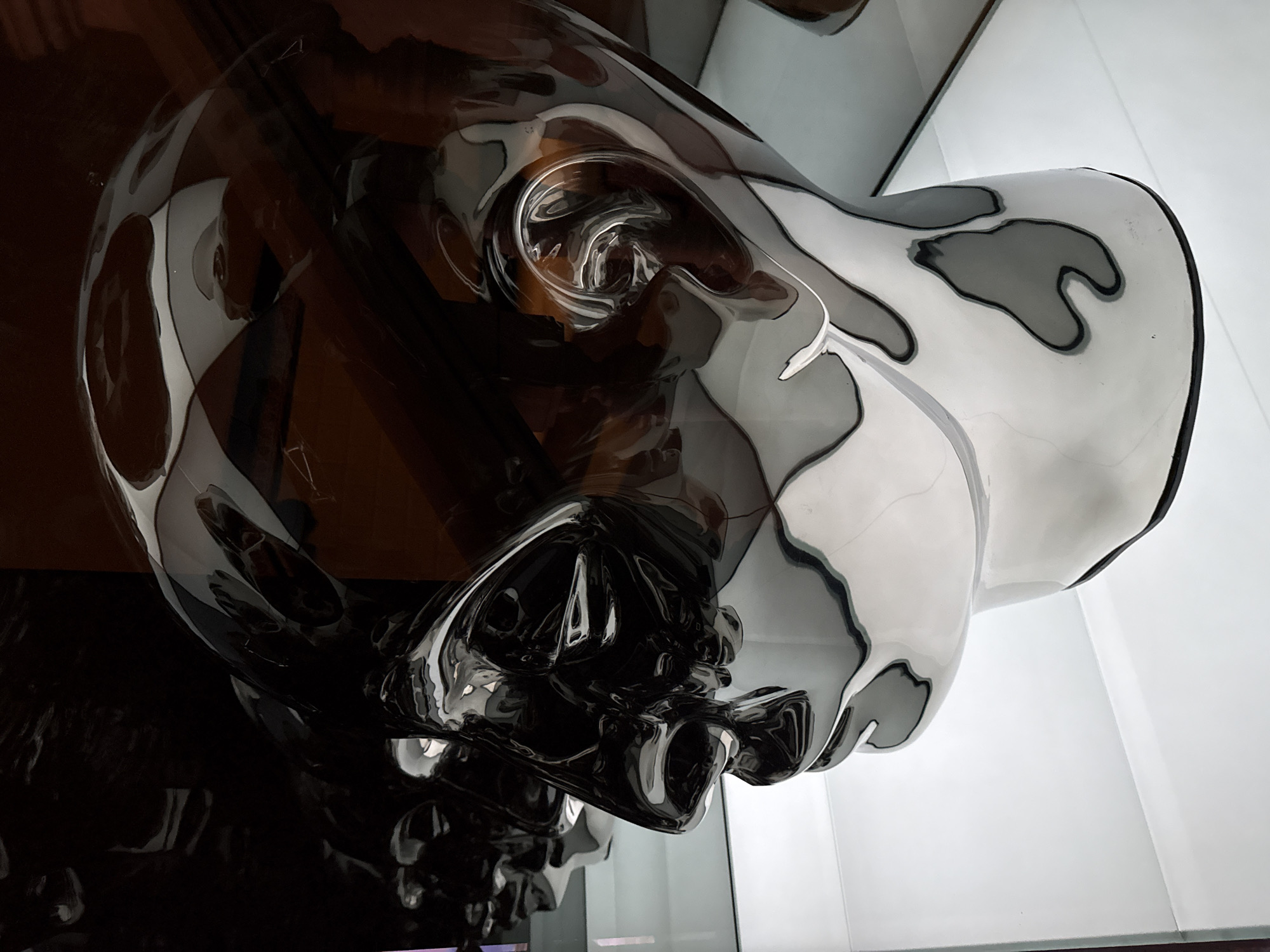 - "A highly reflective, chrome-finished sculpture of a human head is depicted in a left-facing profile" by FM-rE57J2, licensed under CC BY 4.0