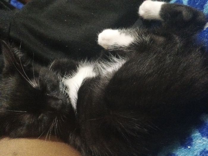- "A black and white tuxedo cat is curled up, sleeping" by FM-n8S452, licensed under CC BY 4.0