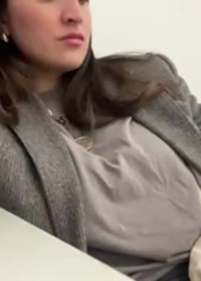 A medium-shot video depicts a woman in a gray blazer sitting at a table, resting her head on her left hand
