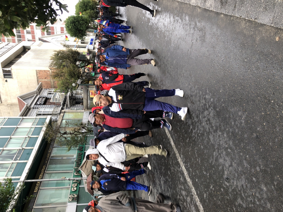 - "The image captures a procession of approximately two dozen individuals, predominantly adult males, walking on a wet asphalt street in La Paz, Bolivia" by FM-OkUX82, licensed under CC BY 4.0