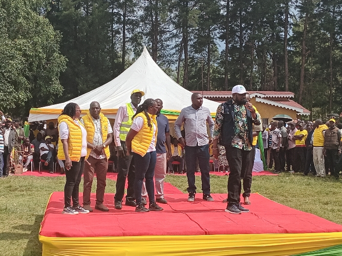An outdoor public gathering is depicted in West Kabras ward, Kenya