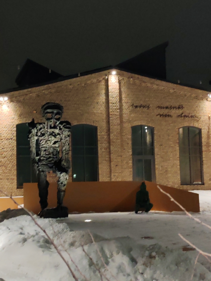 - "An outdoor scene at night depicts the Zuzeum Art Centre at Lāčplēša iela 101, Rīga, Latvia, during winter" by FM-pQX6Q2, licensed under CC BY 4.0