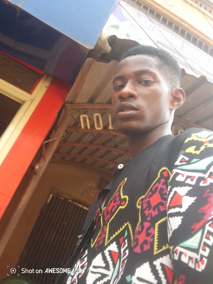 A young adult male, appearing to be of African descent, is depicted in a close-up, slightly low-angle portrait shot taken outdoors in Onitsha, Nigeria
