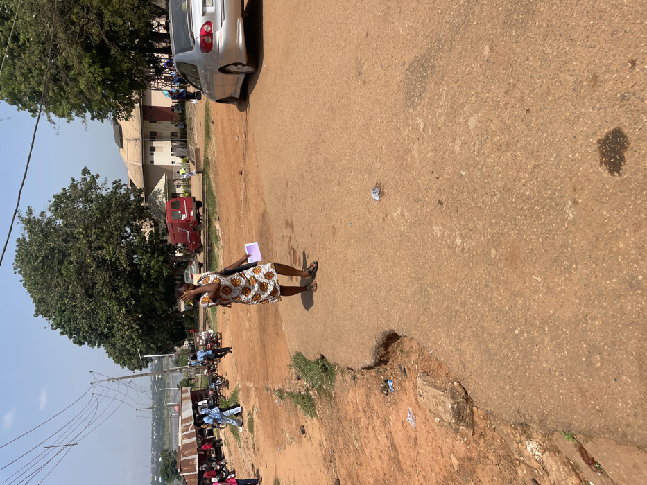 The image portrays a daytime scene in Markurdi, Nigeria, under clear, sunny conditions