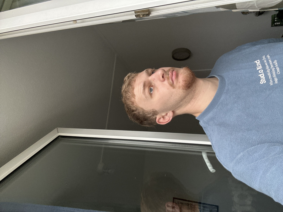 - "The image captures a young adult male, located in Strasbourg, France, from the chest up, positioned between an open doorway/window frame on his left (viewer's right) and a closed glass door/window on his right (viewer's left)" by FM-C5pvp1, licensed under CC BY 4.0