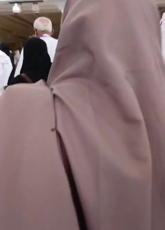 - "The video, shot from a low angle, shows a crowd of people, many dressed in the traditional white garments associated with Hajj pilgrimage, moving through a white-walled corridor" by FM-DHzUs1, licensed under CC BY 4.0