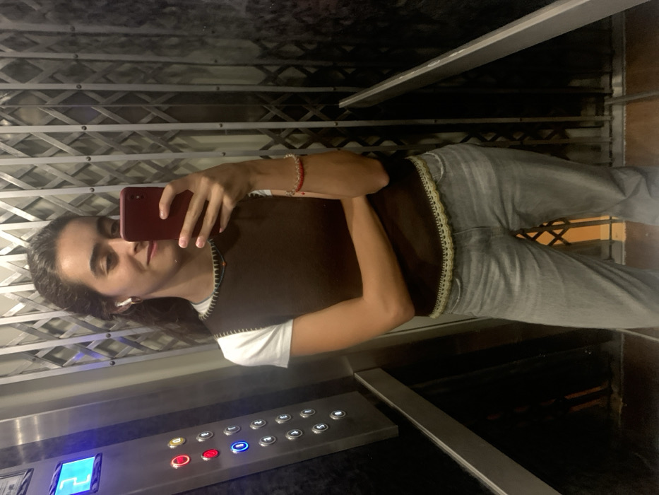 - "A young adult female is taking a mirror selfie inside an elevator, a setting consistent with older residential or commercial buildings commonly found throughout Lisbon, Portugal" by FM-z8icA2, licensed under CC BY 4.0