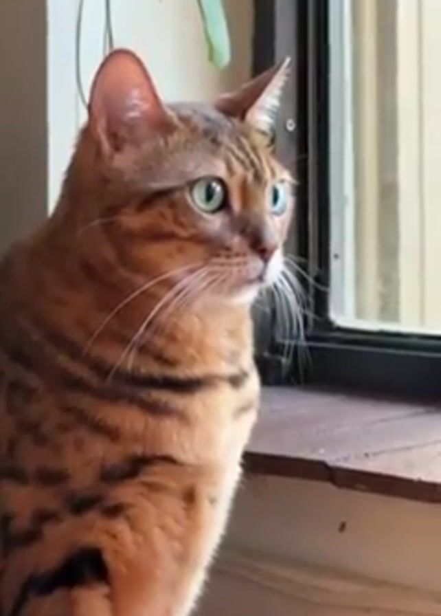 - "A Bengal cat is sitting on a wooden window sill, looking out the window" by FM-8YX5o2, licensed under CC BY 4.0