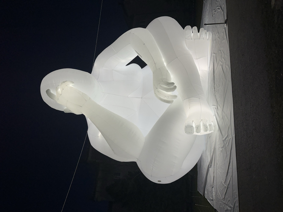 - "An oversized, white, internally illuminated inflatable sculpture of a human-like figure is depicted at night in Sofia, Bulgaria" by FM-aBUI22, licensed under CC BY 4.0