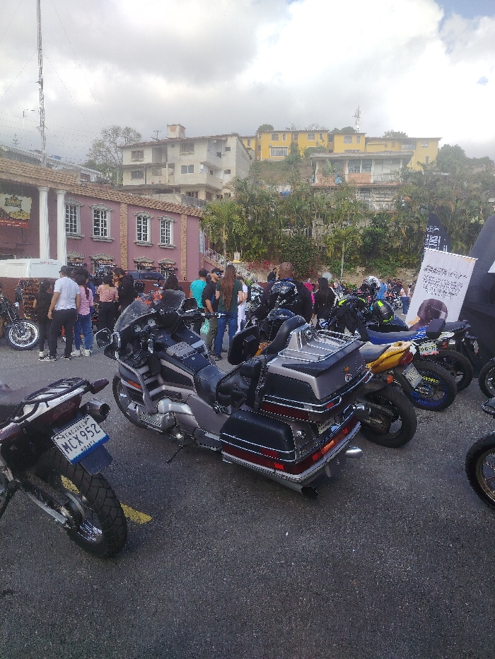 The image depicts an outdoor gathering, likely a motorcycle event, in Carrizal, Venezuela