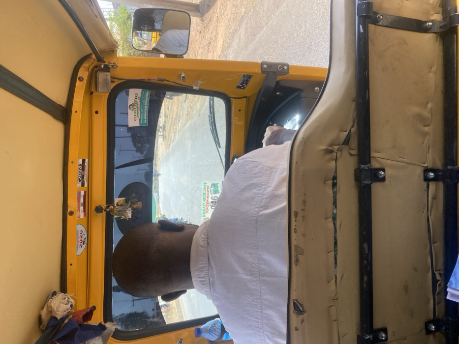 - "The image provides a forward-facing view from the passenger compartment of a yellow auto-rickshaw (keke napep) in Barnawa, Nigeria" by FM-UieN92, licensed under CC BY 4.0
