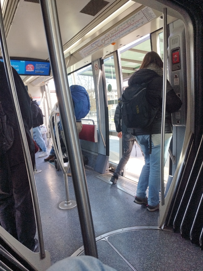 - "The image displays the interior of a tram in Strasbourg, France, viewed from a low perspective looking towards an open door at a station" by FM-R5IpV2, licensed under CC BY 4.0