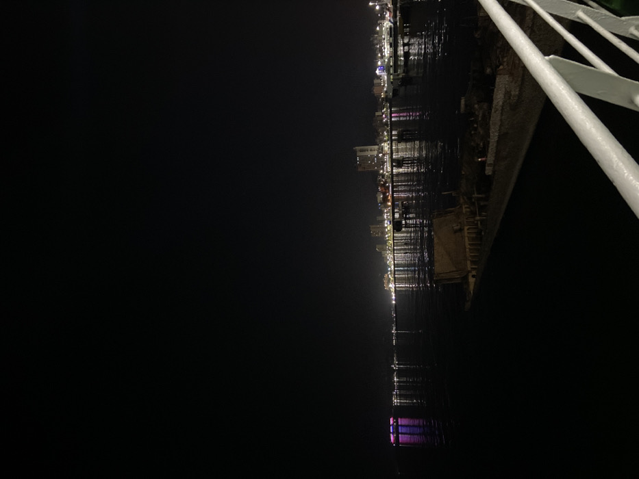 This nighttime image captures the waterfront of Puerto La Cruz, Venezuela