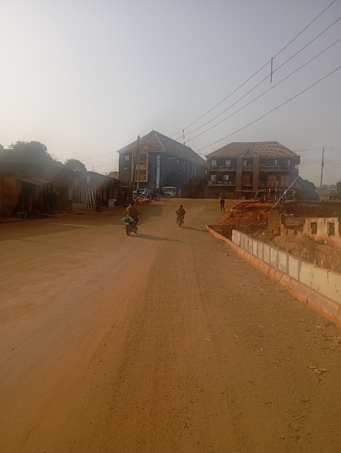 - "The image captures an unpaved, reddish-brown dirt road in Kabong, Nigeria, sloping gently upwards under a hazy, pale sky" by FM-mPBTm2, licensed under CC BY 4.0